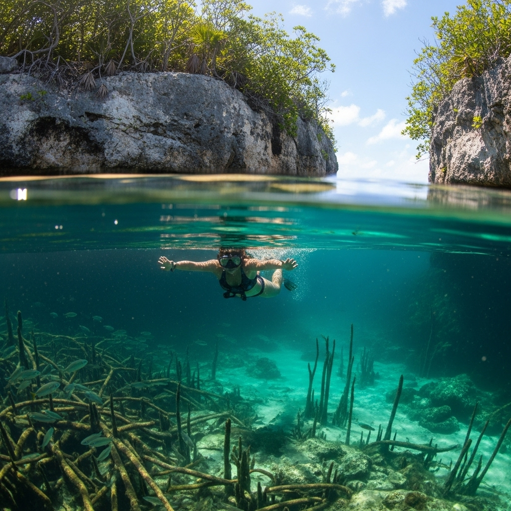 Yalahau, on the other hand, is an "ojo de agua," a natural spring that surfaces directly into an open lagoon. It doesn't have the typical cave-like formations of most cenotes, but rather appears as a large, shallow, open-air pool. Both cenotes and "ojos de agua" are fed by the Yucatan Peninsula's vast underground river systems, making them equally refreshing and vital to the ecosystem.